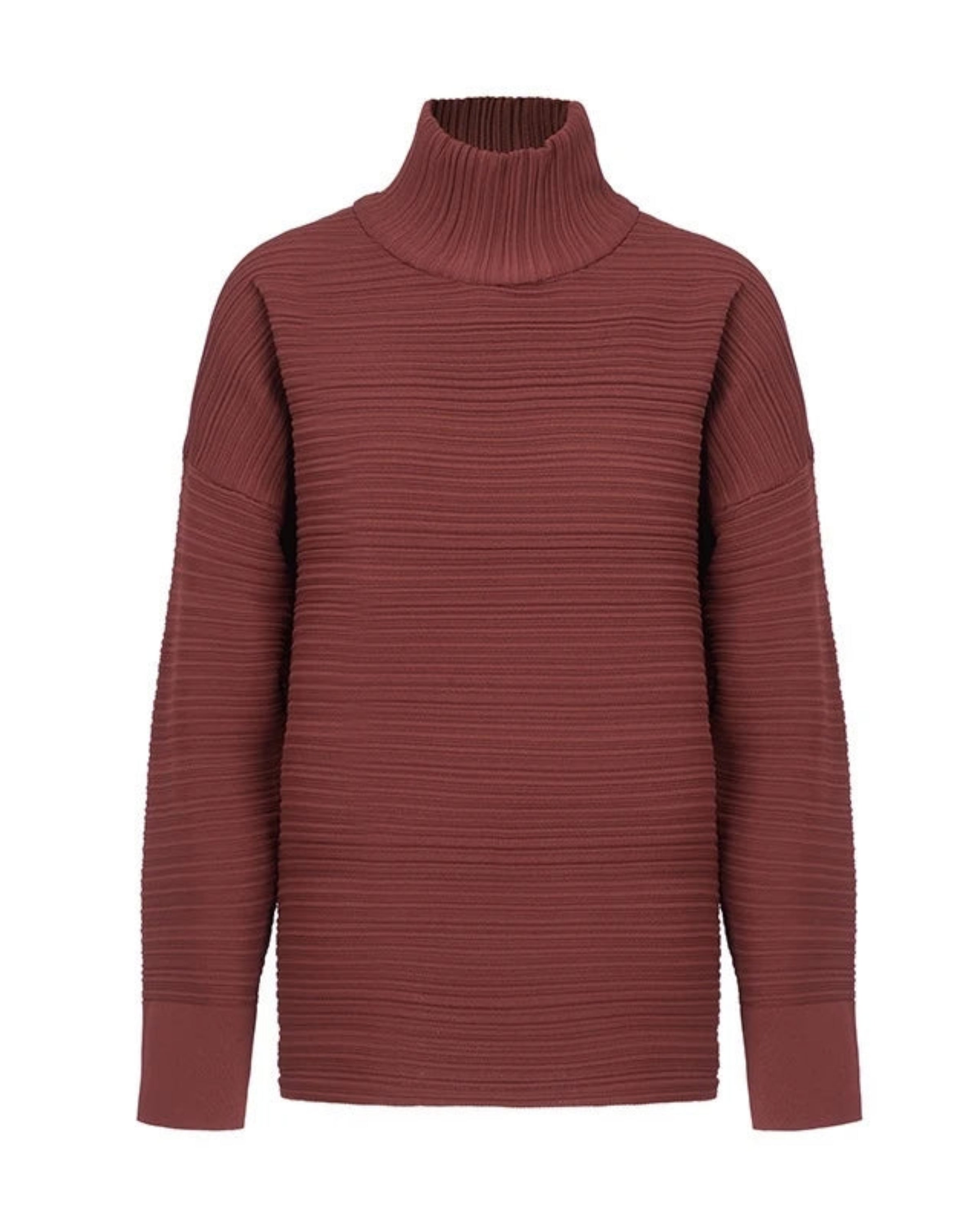 The Ottoman rib construction adds depth and dimension, while the high turtleneck and long sleeves create a polished, modern look for work, travel, or daily wear.