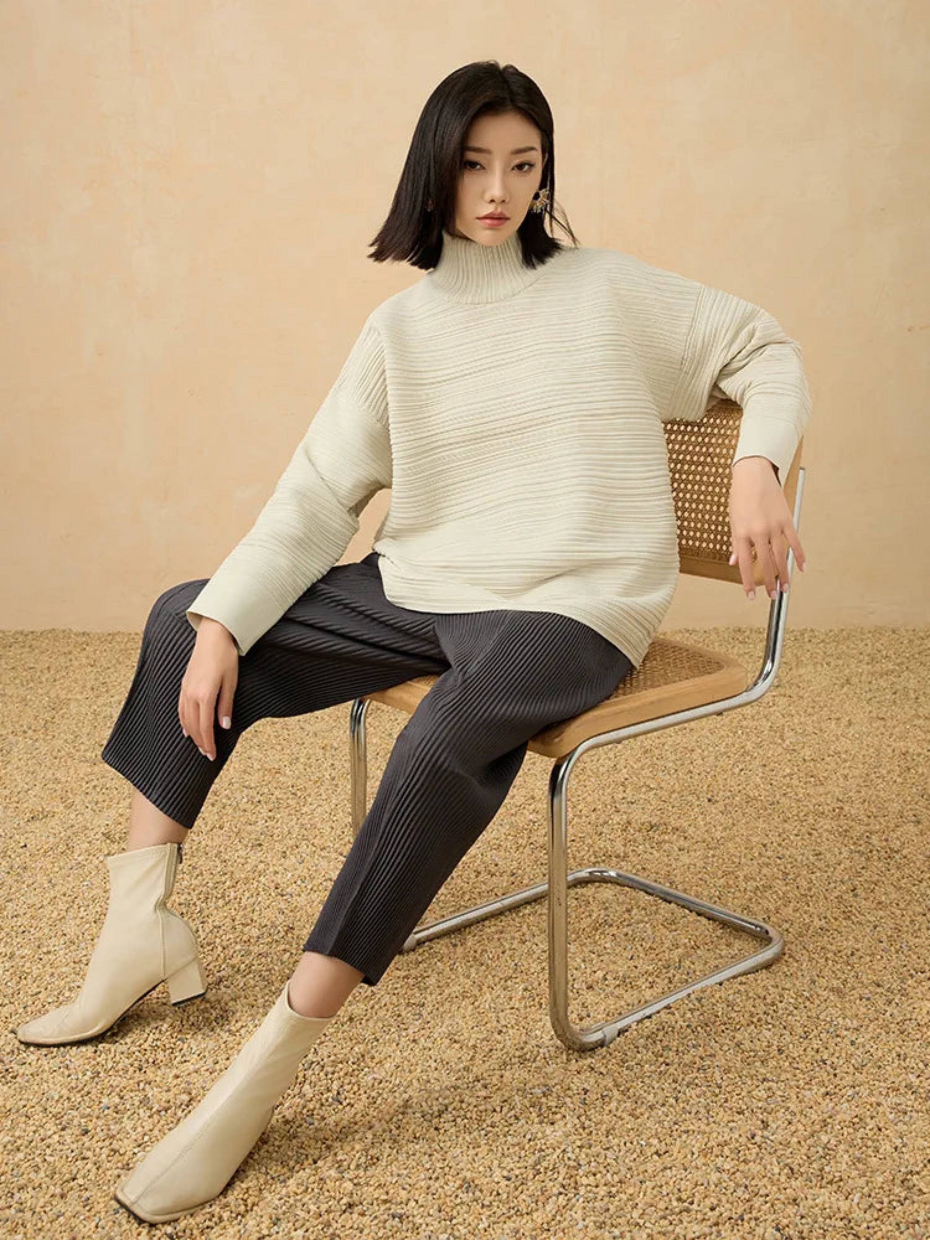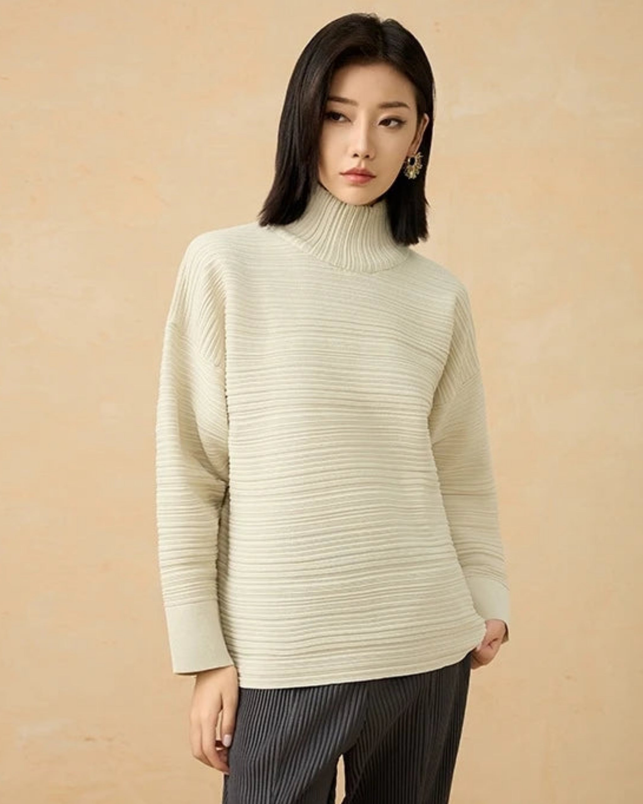 Luxury Japanese Pleated Turtleneck Sweater – Relaxed Knit Top
