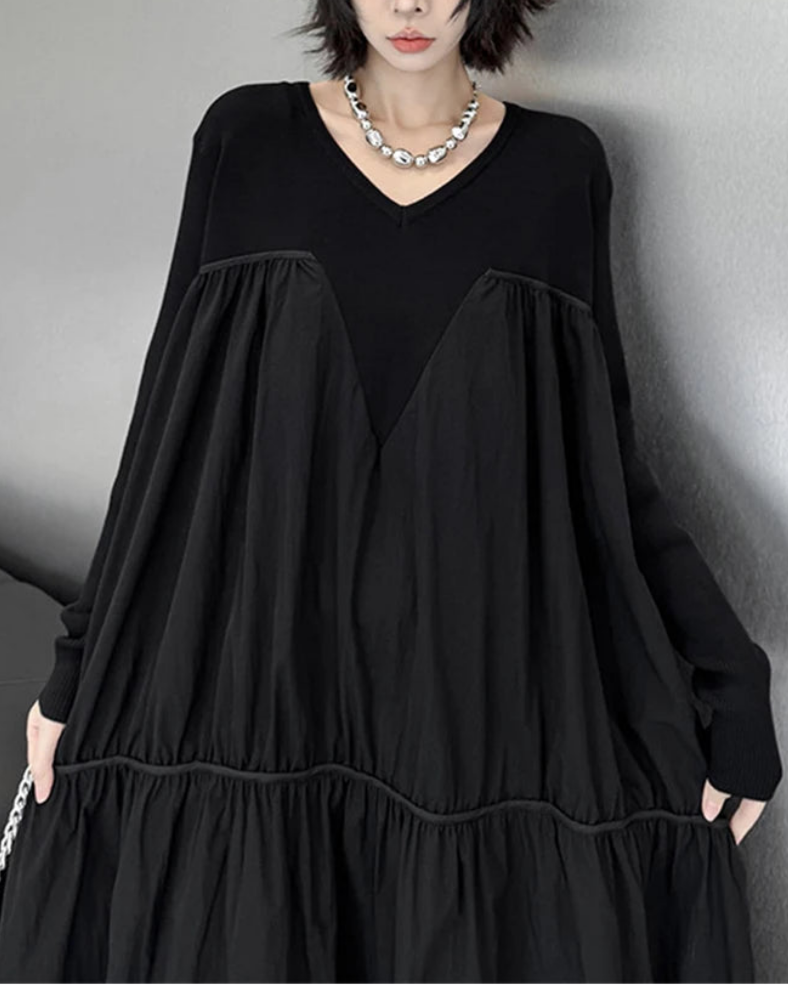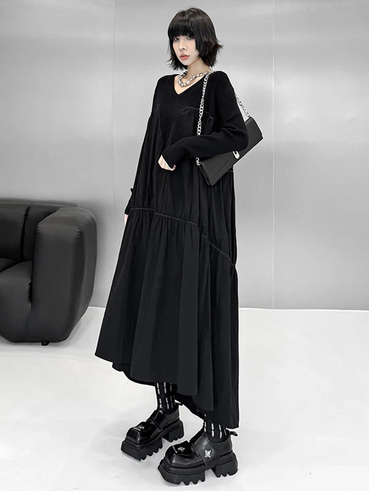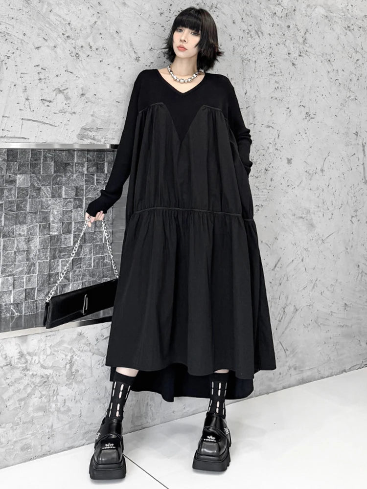 A modern, oversized midi dress blending soft fabric with subtle knit contrast. The relaxed silhouette and sculpted drape create a refined, fashion-forward look made for women who want standout style for daily wear.