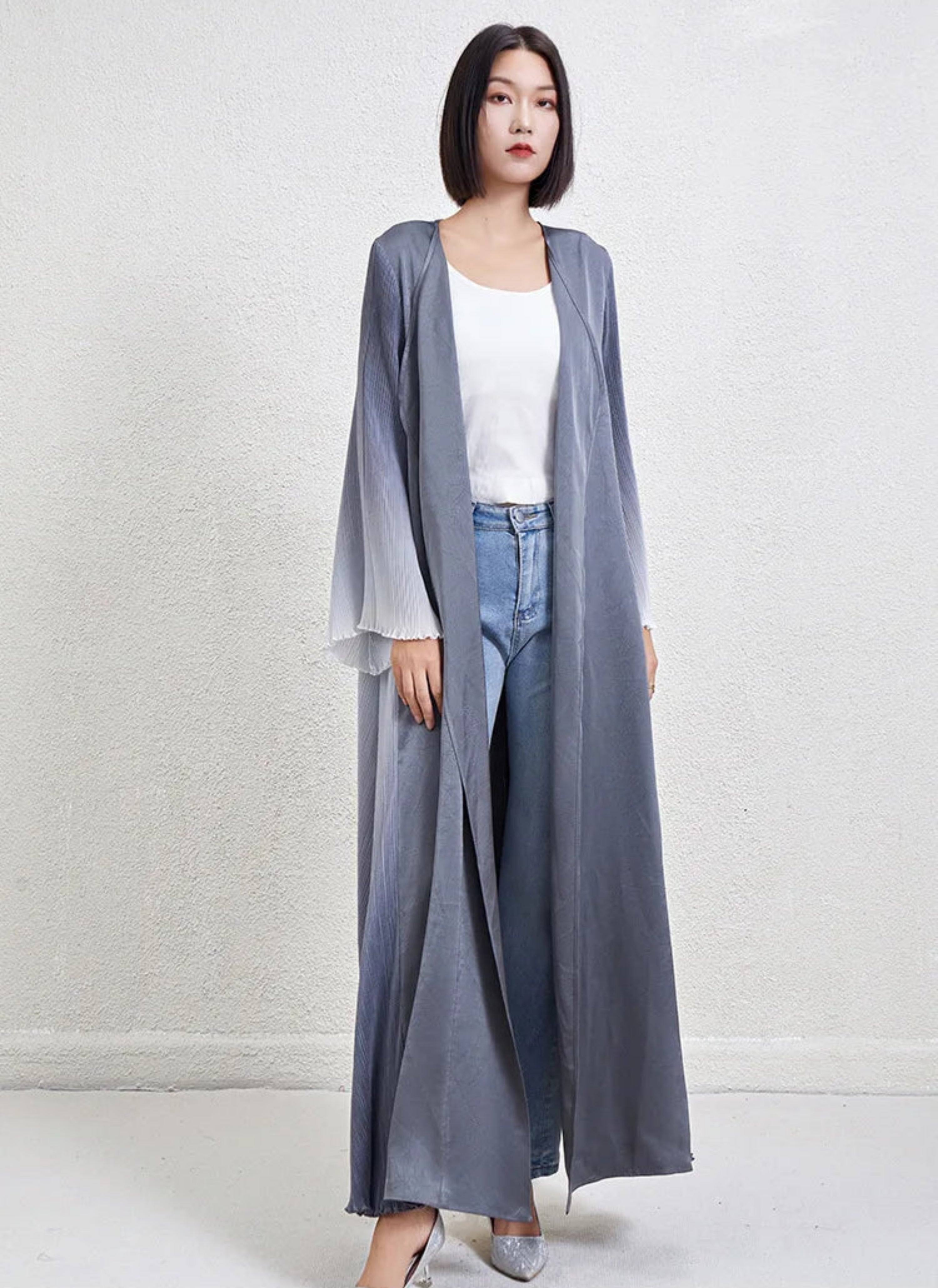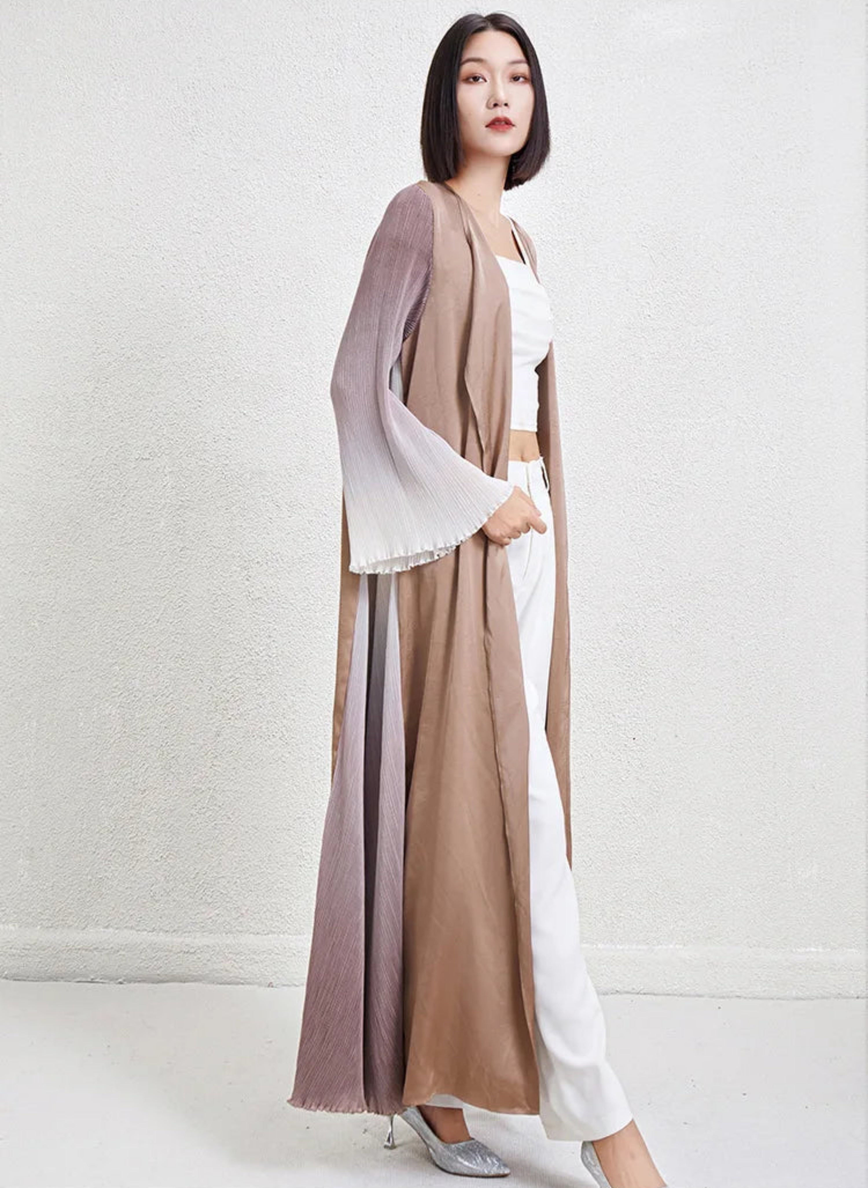 Luxury Plissé Pleated Pleats Longline Duster Cardigan