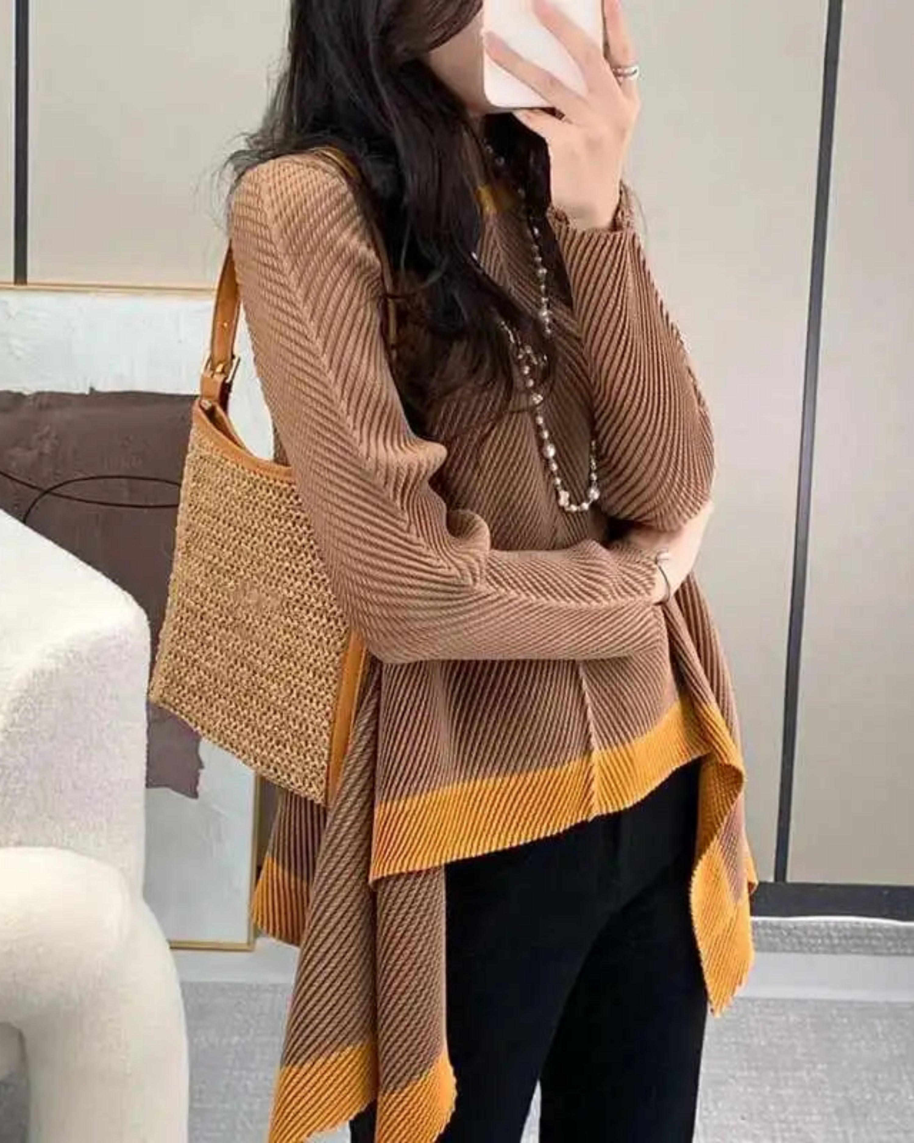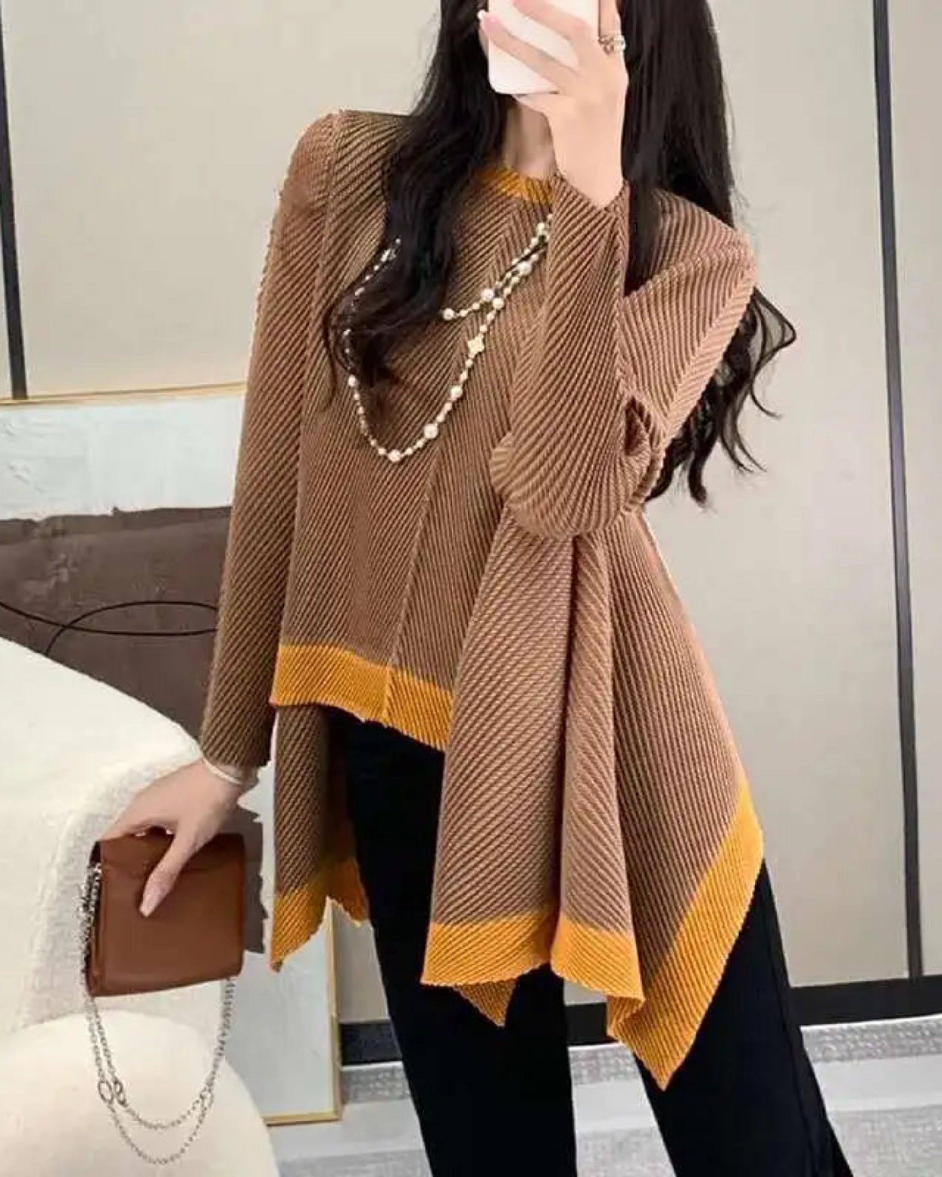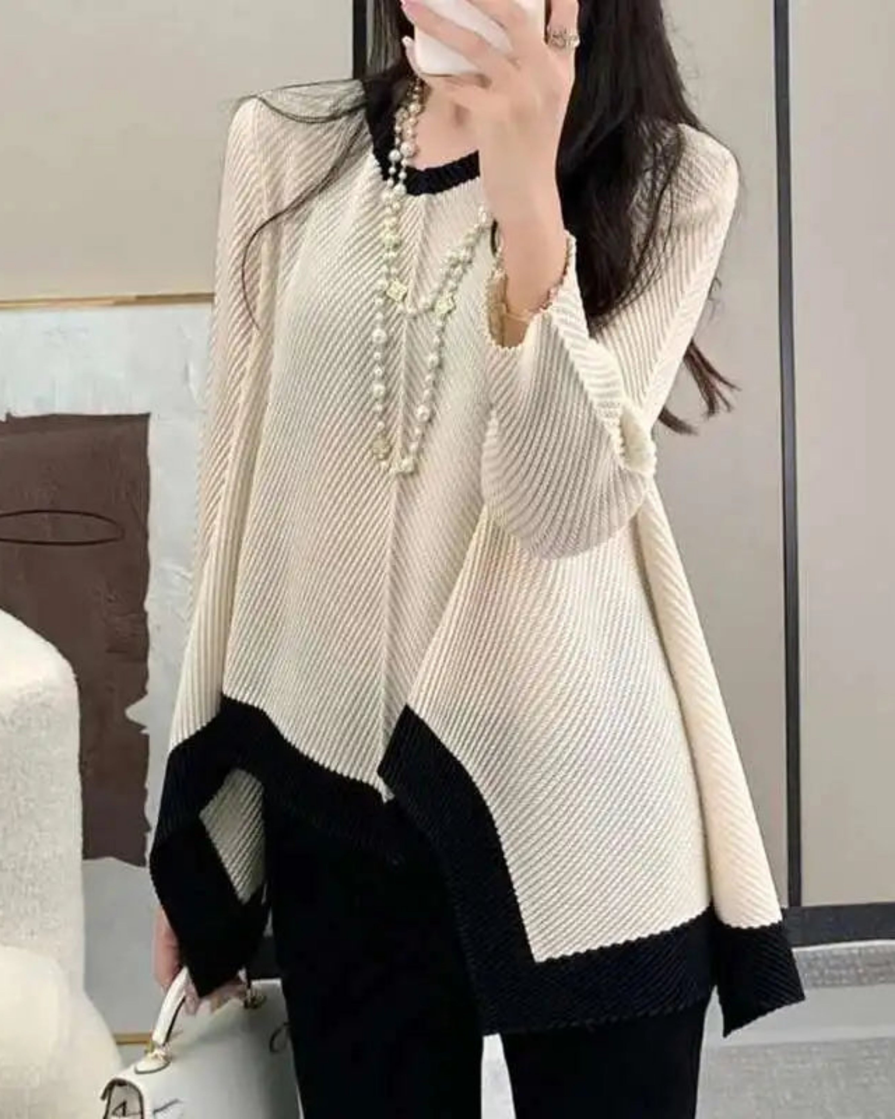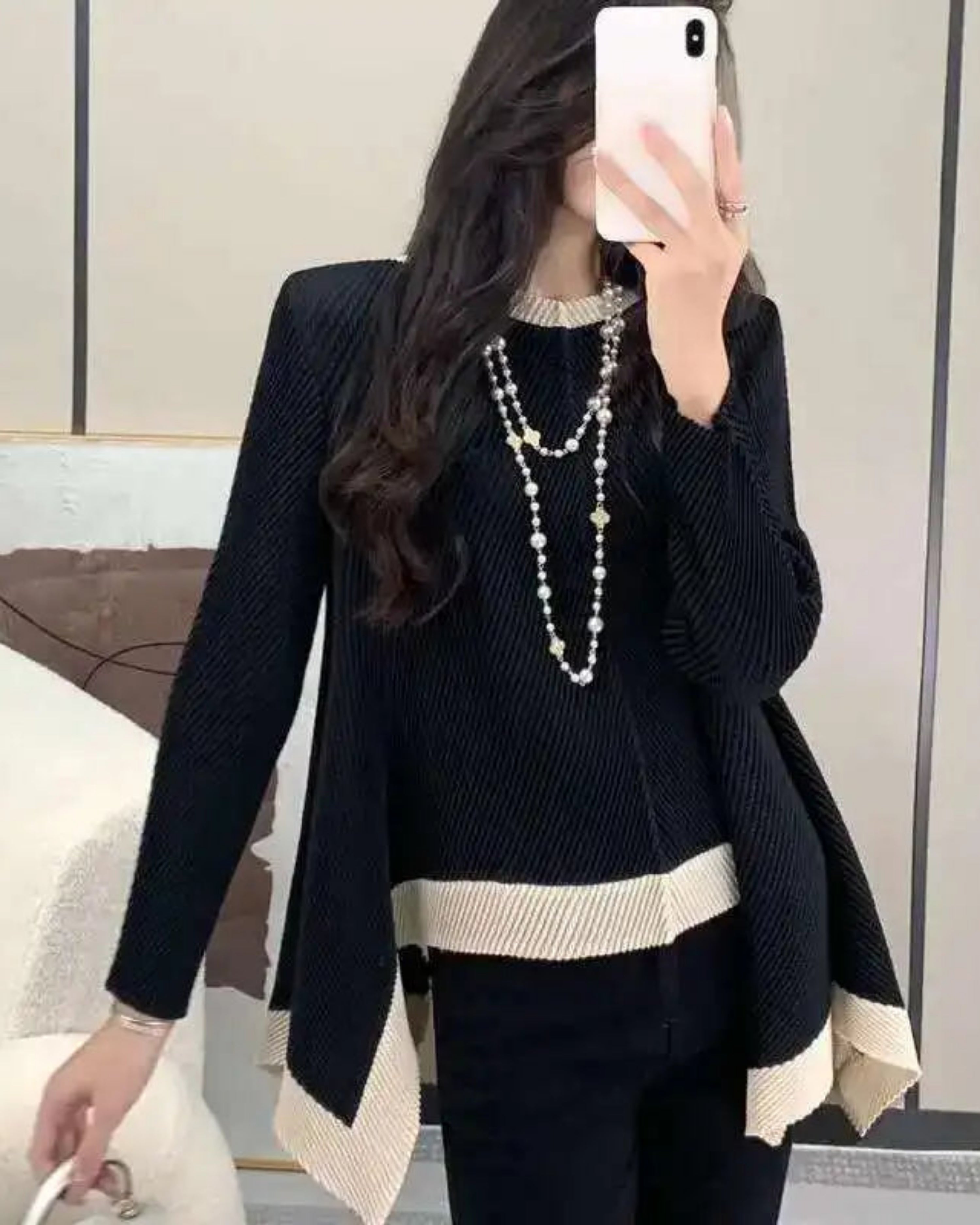 Unique top in premium Japanese pleats with a round neckline and long sleeves.
