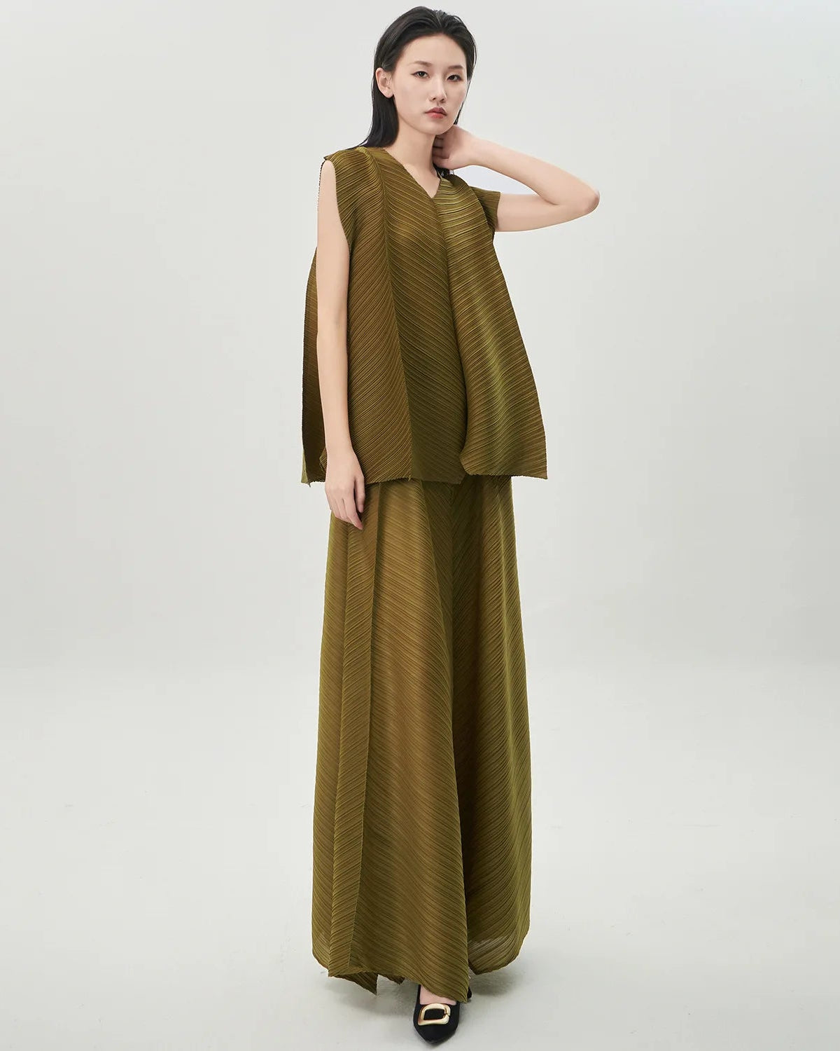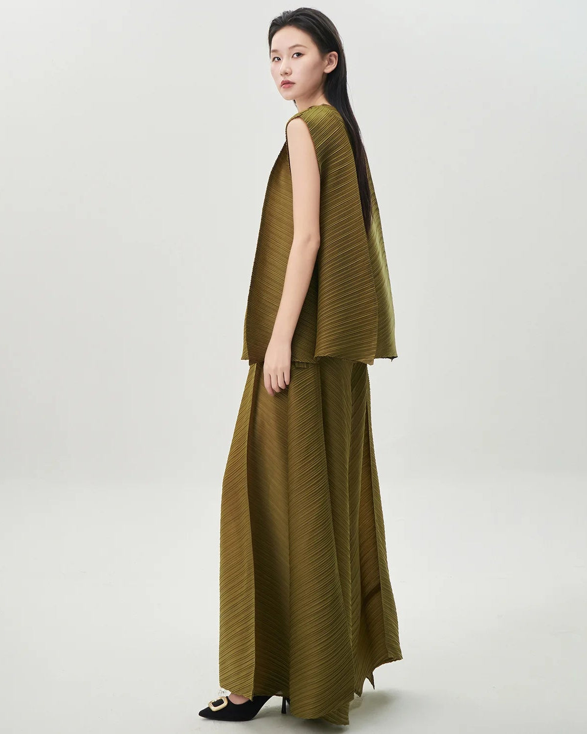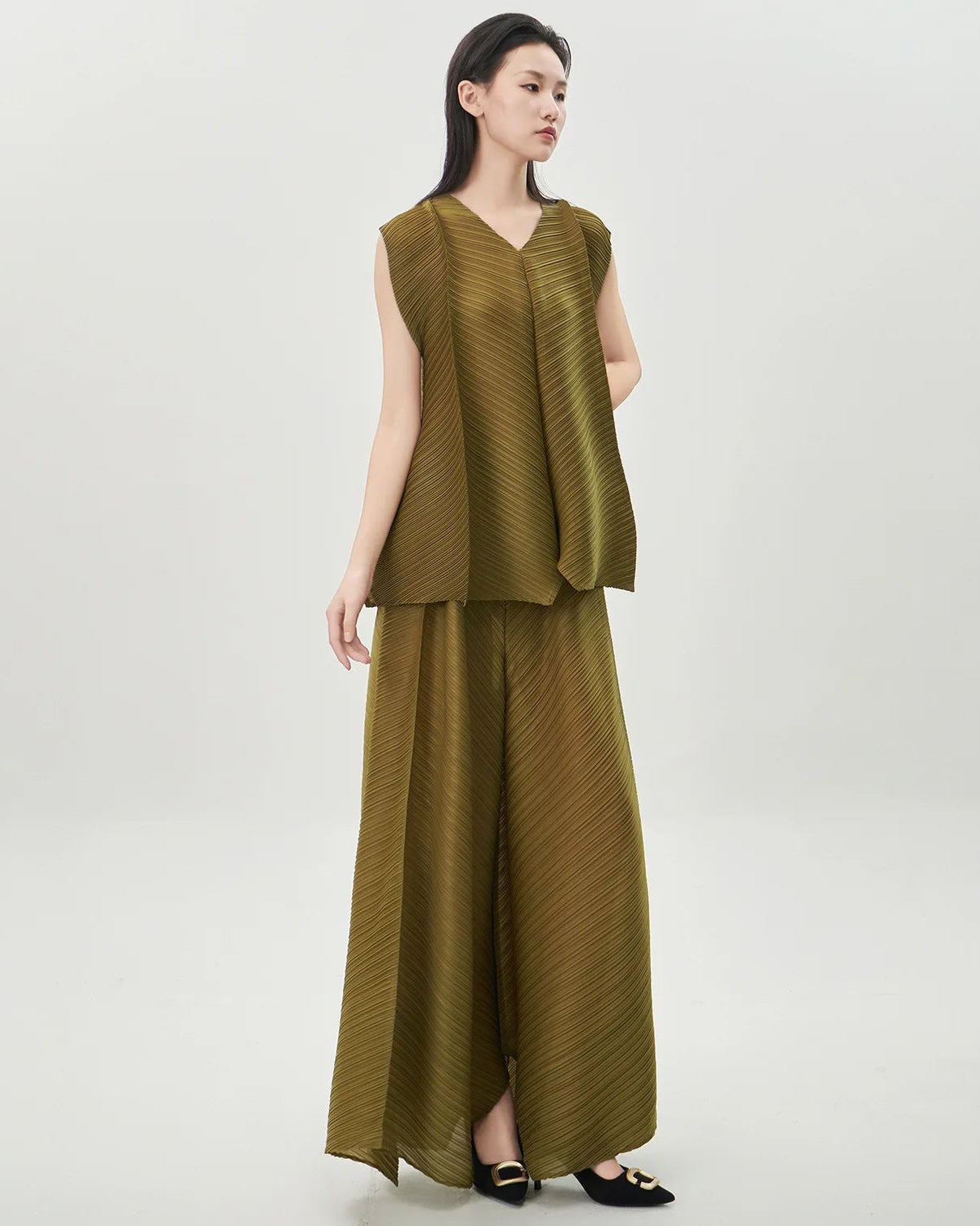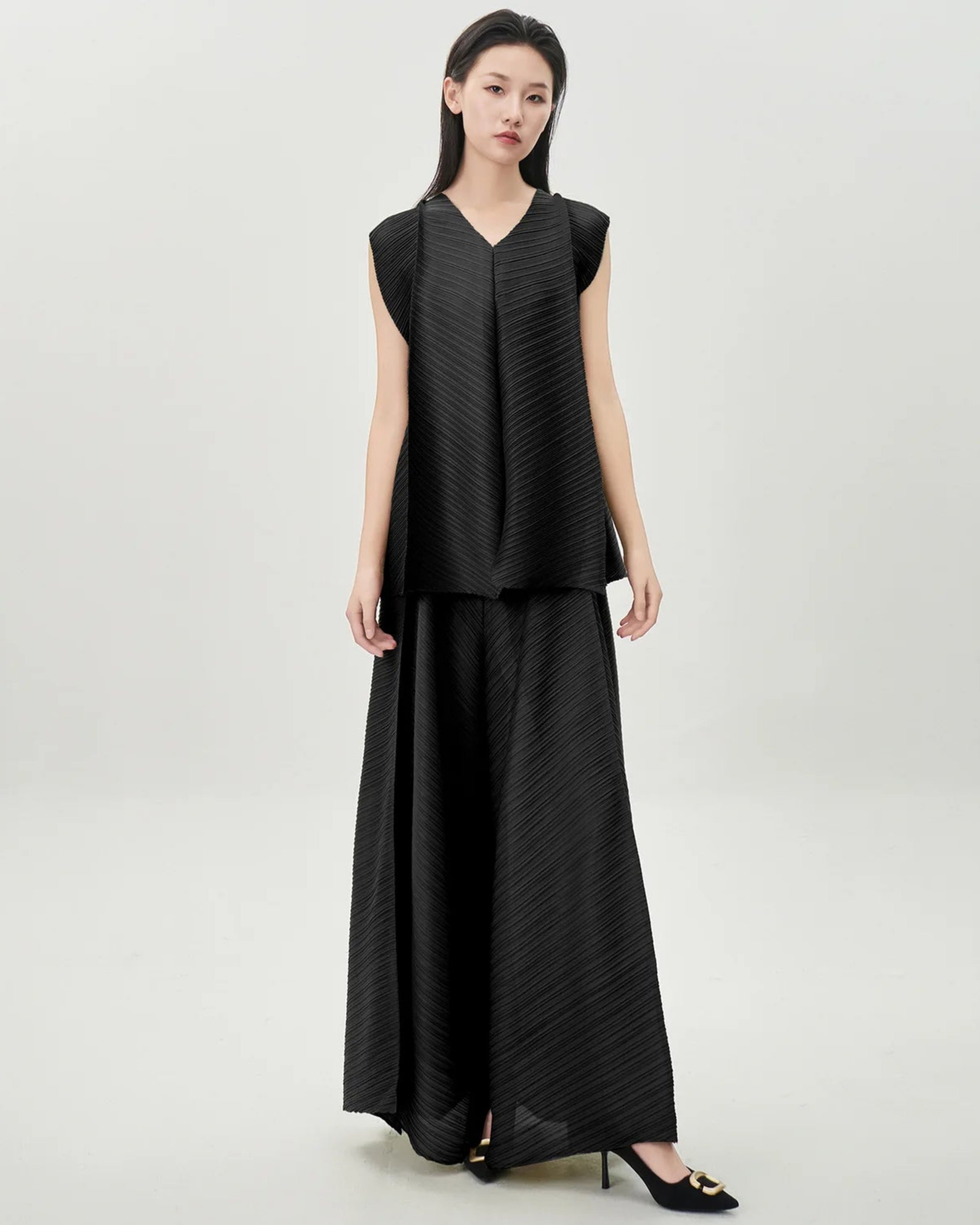 These pleated outfits are perfect for daily wear. The cut and fabric feel high-end.