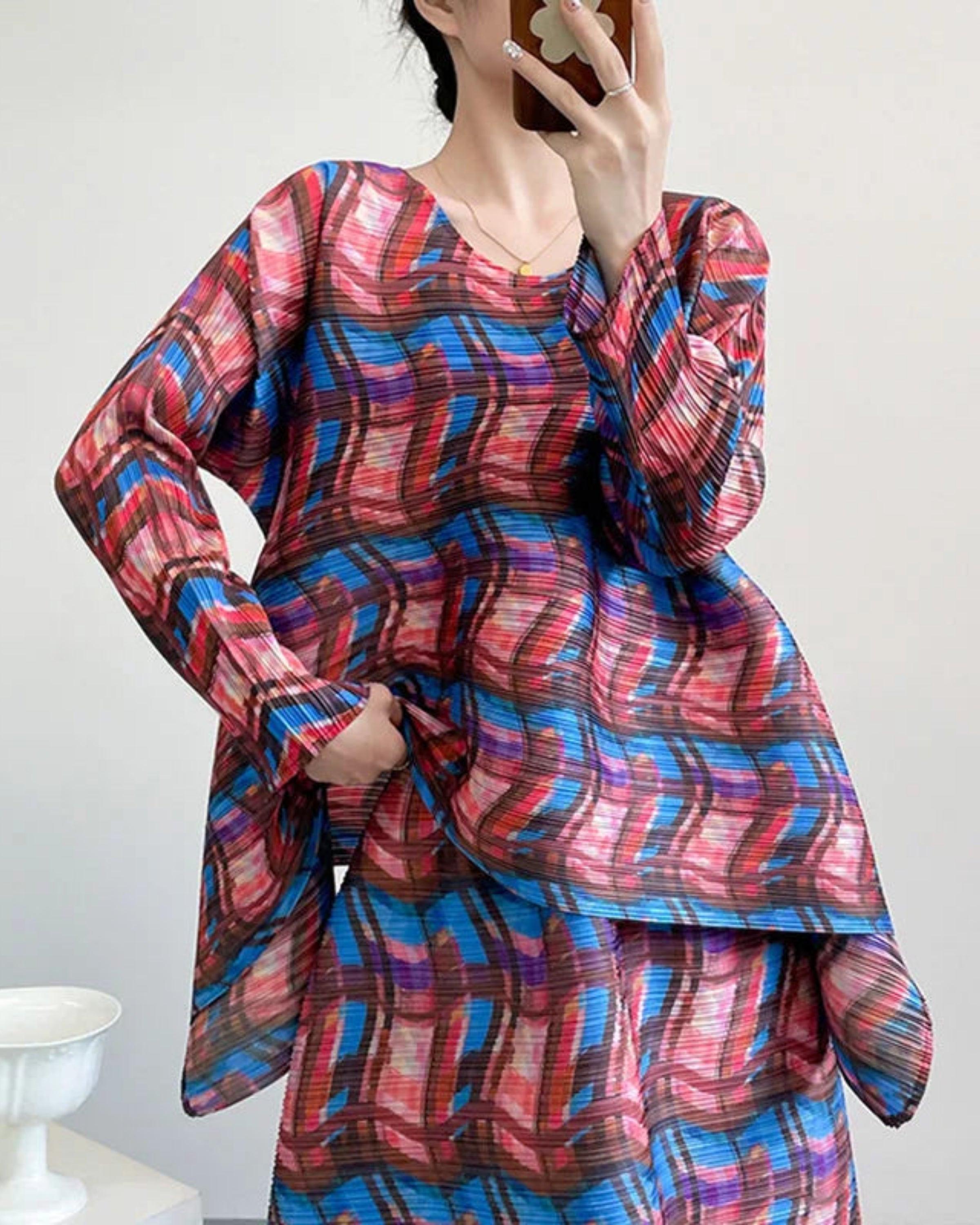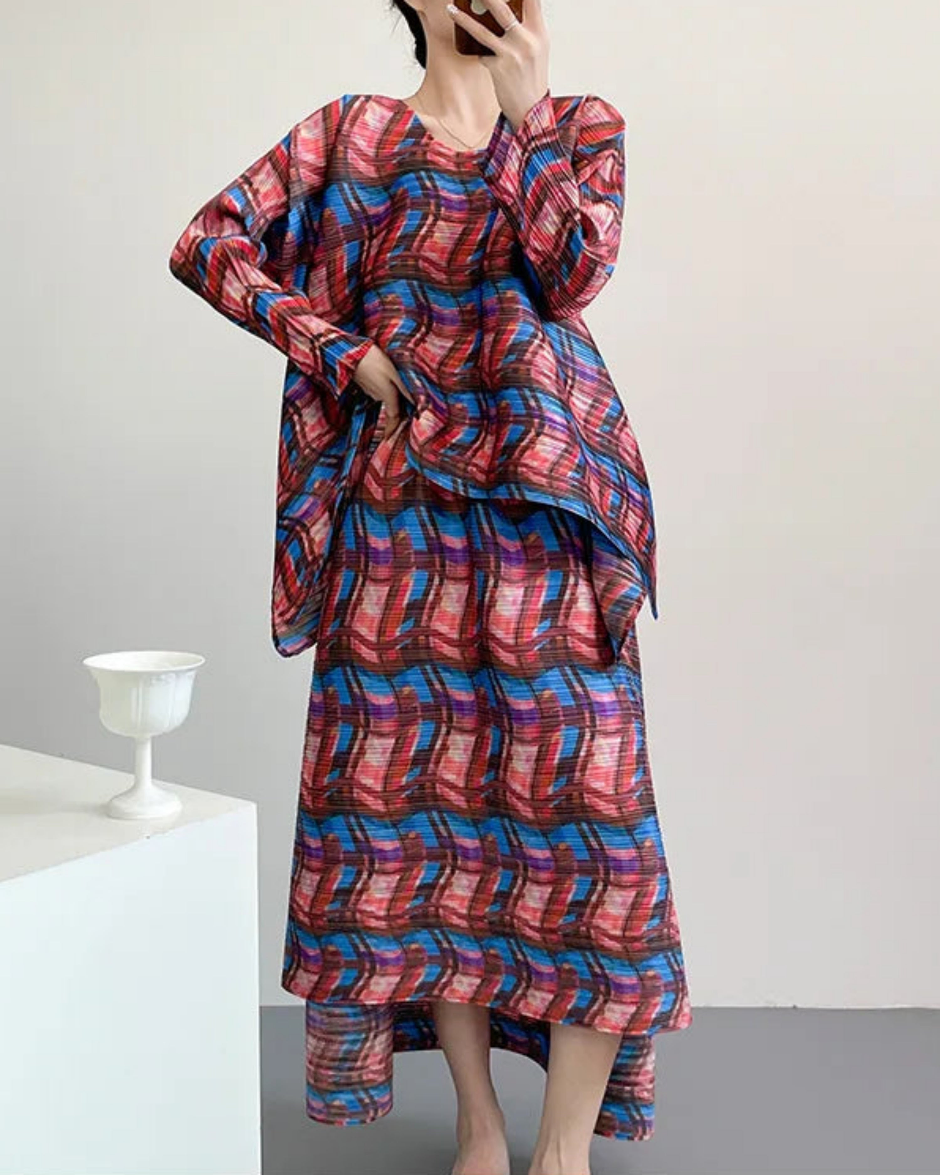 Luxury Travel Essential Pleated-Textured Pleats Midi Skirt Set