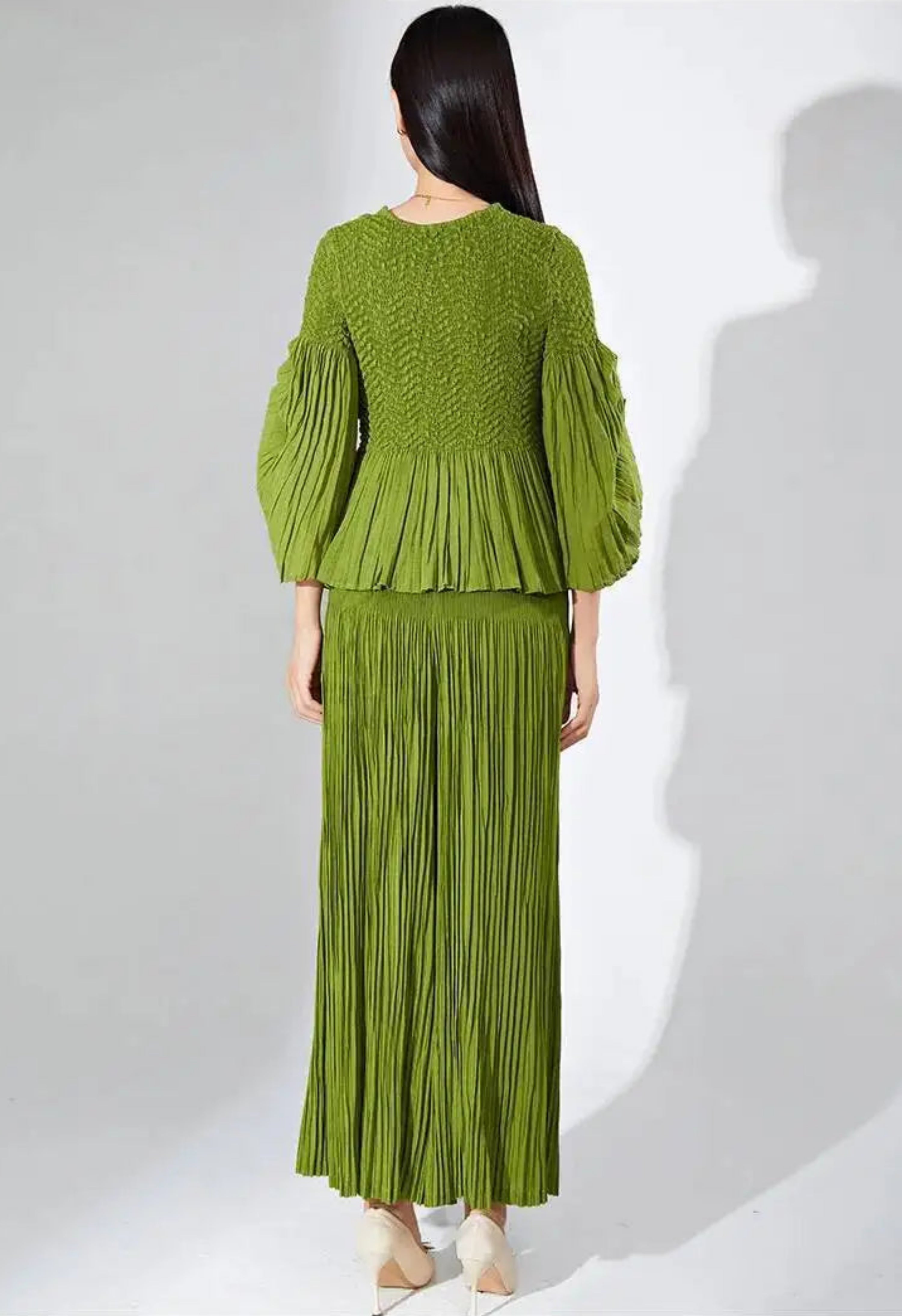 These pleated outfits are perfect for daily wear. The cut and fabric feel high-end.