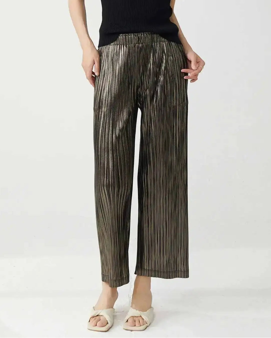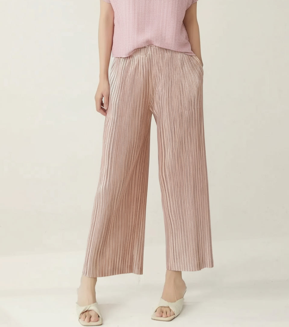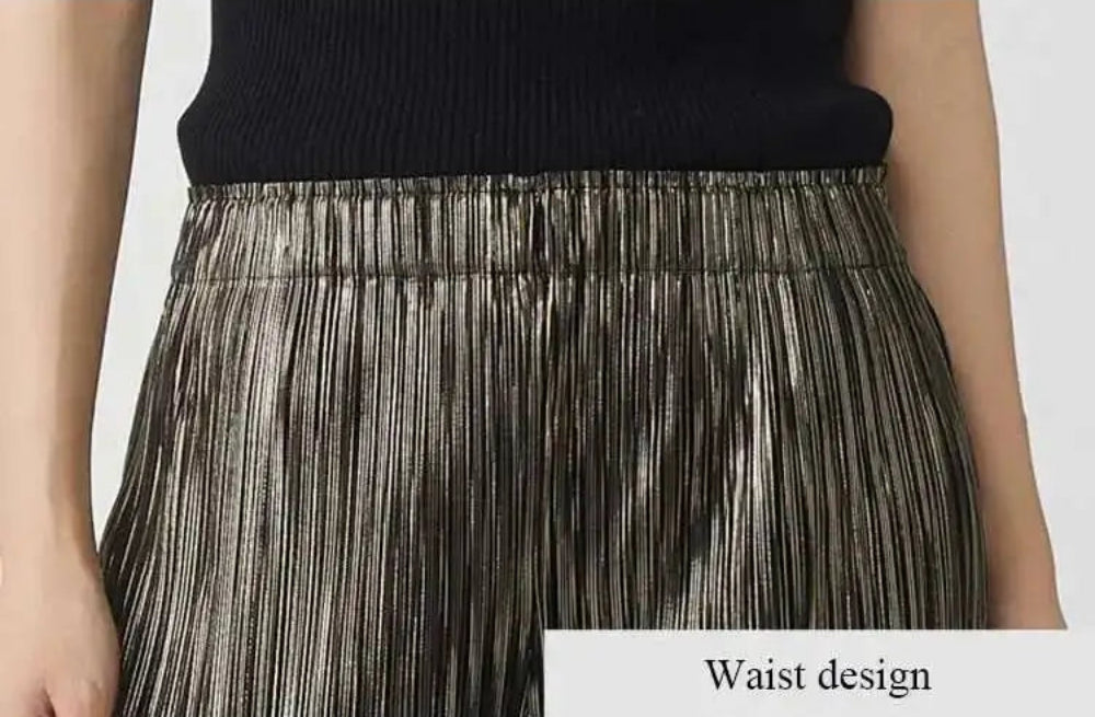 Elegant Plissé Wide-Leg Pants