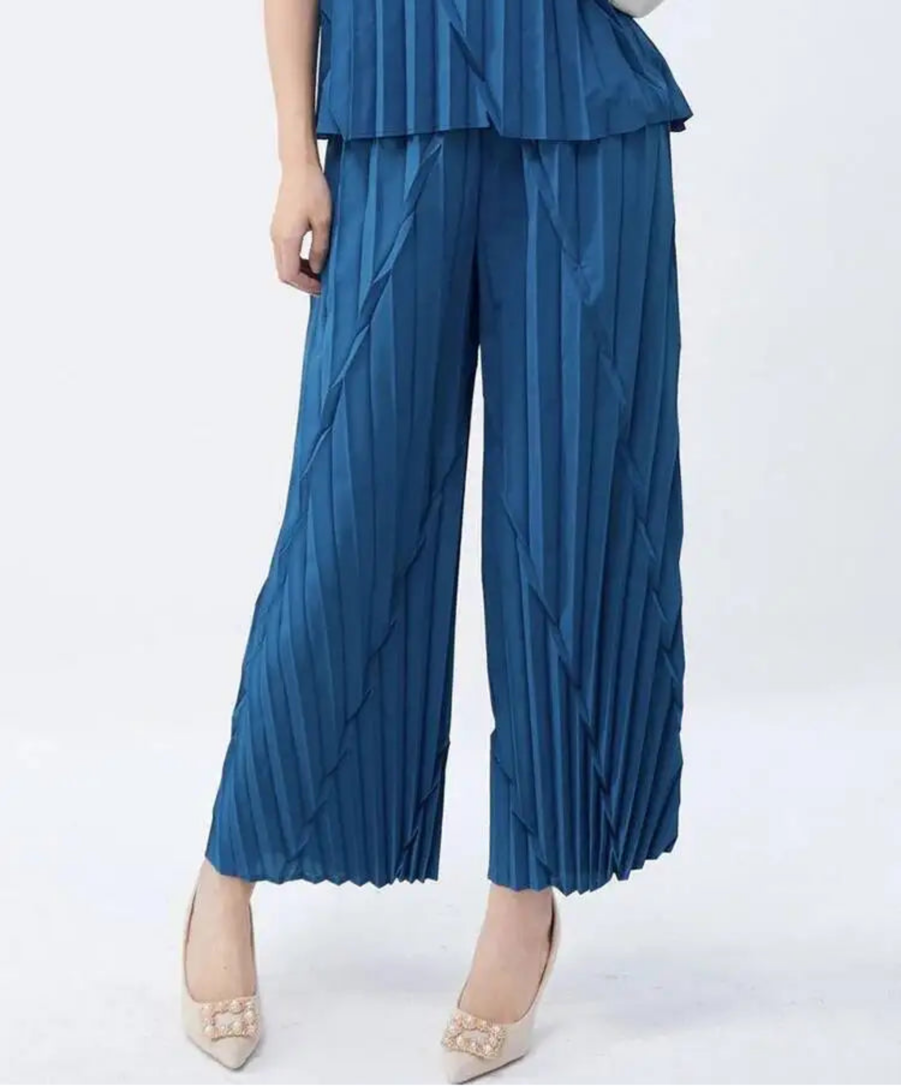 These cropped pants showcase Japanese pleats with a relaxed wide-leg shape and a stretchy pull-on waistband. Lightweight, wrinkle-resistant, and easy to pack, they’re perfect for work, travel, resorts, cruises, evenings, or elevated everyday wear.
