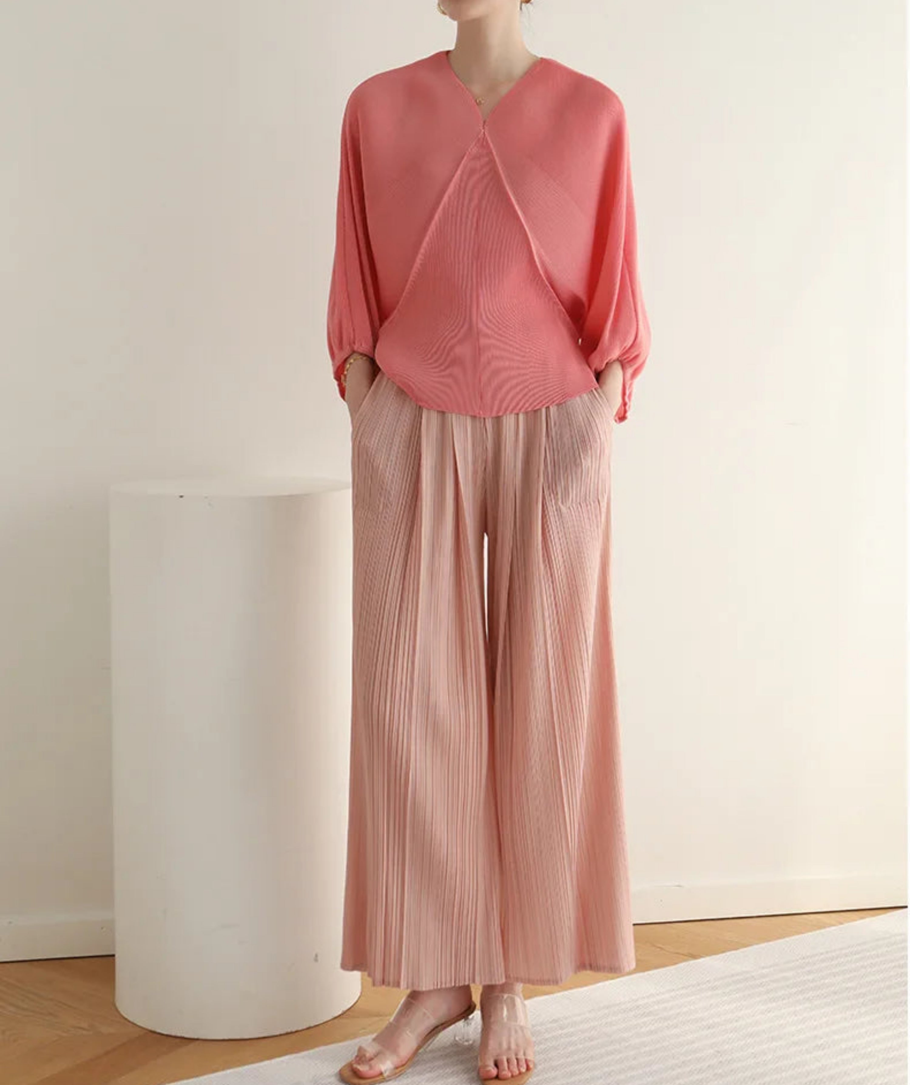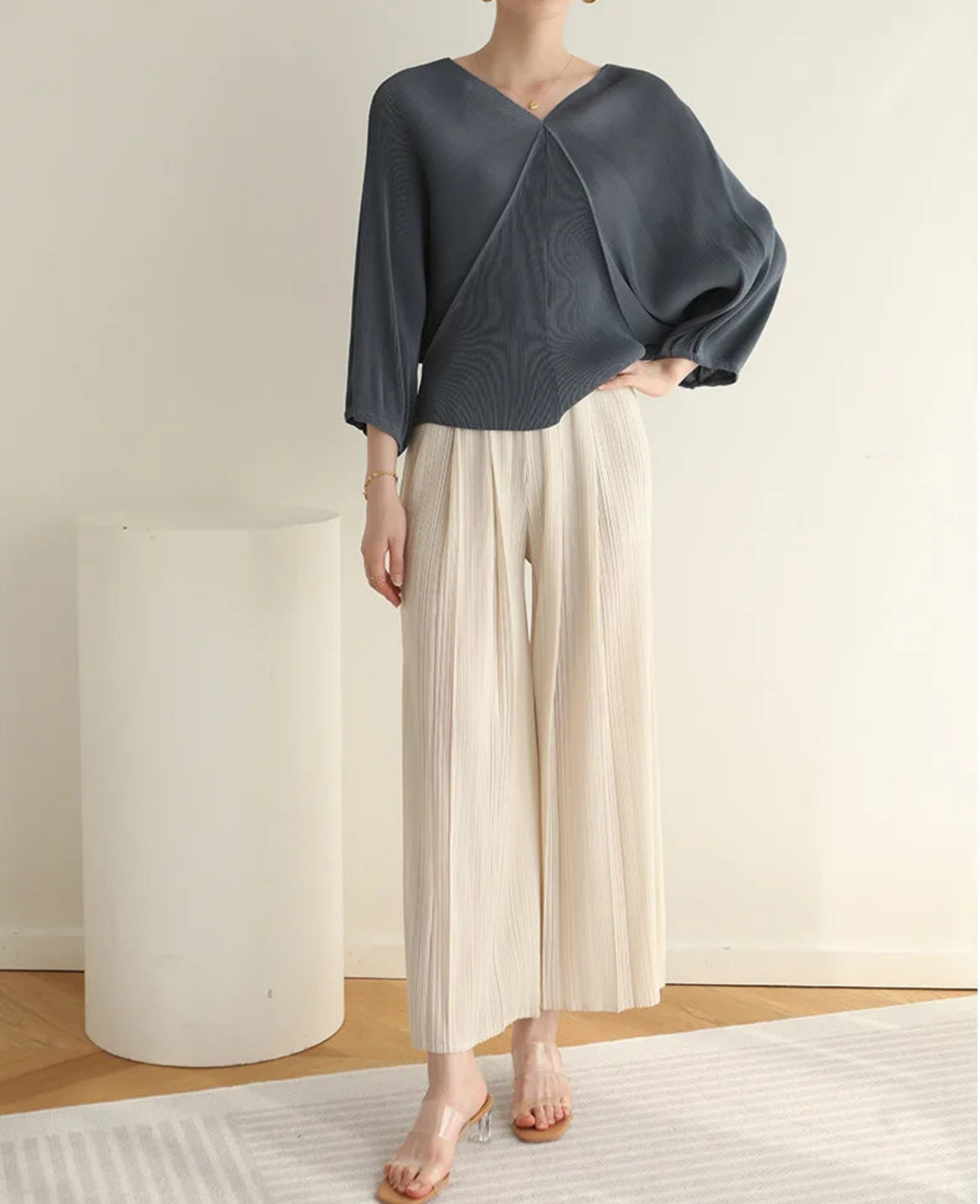 These pleated outfits are perfect for daily wear. The cut and fabric feel high-end.