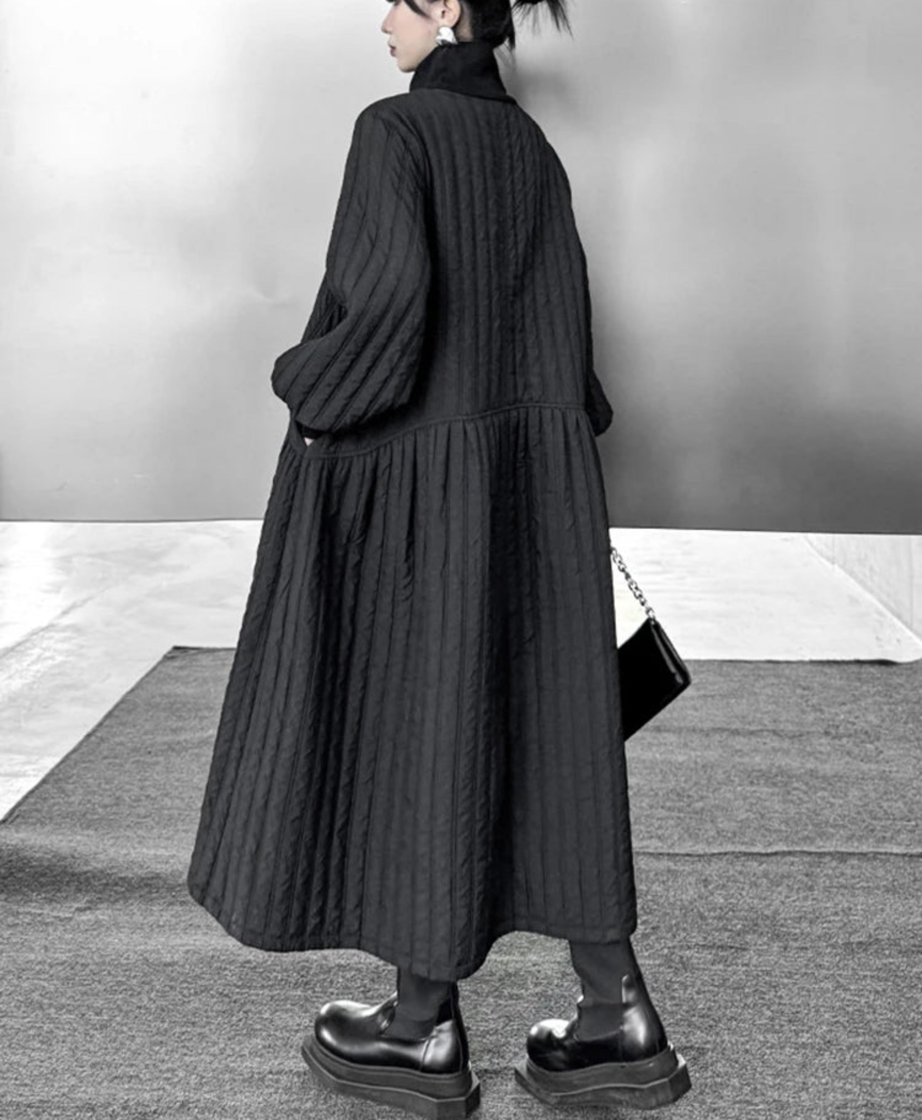 Warm, structured, and refined, it delivers comfort with sculptural presence for travel, work, and elevated daily wear.