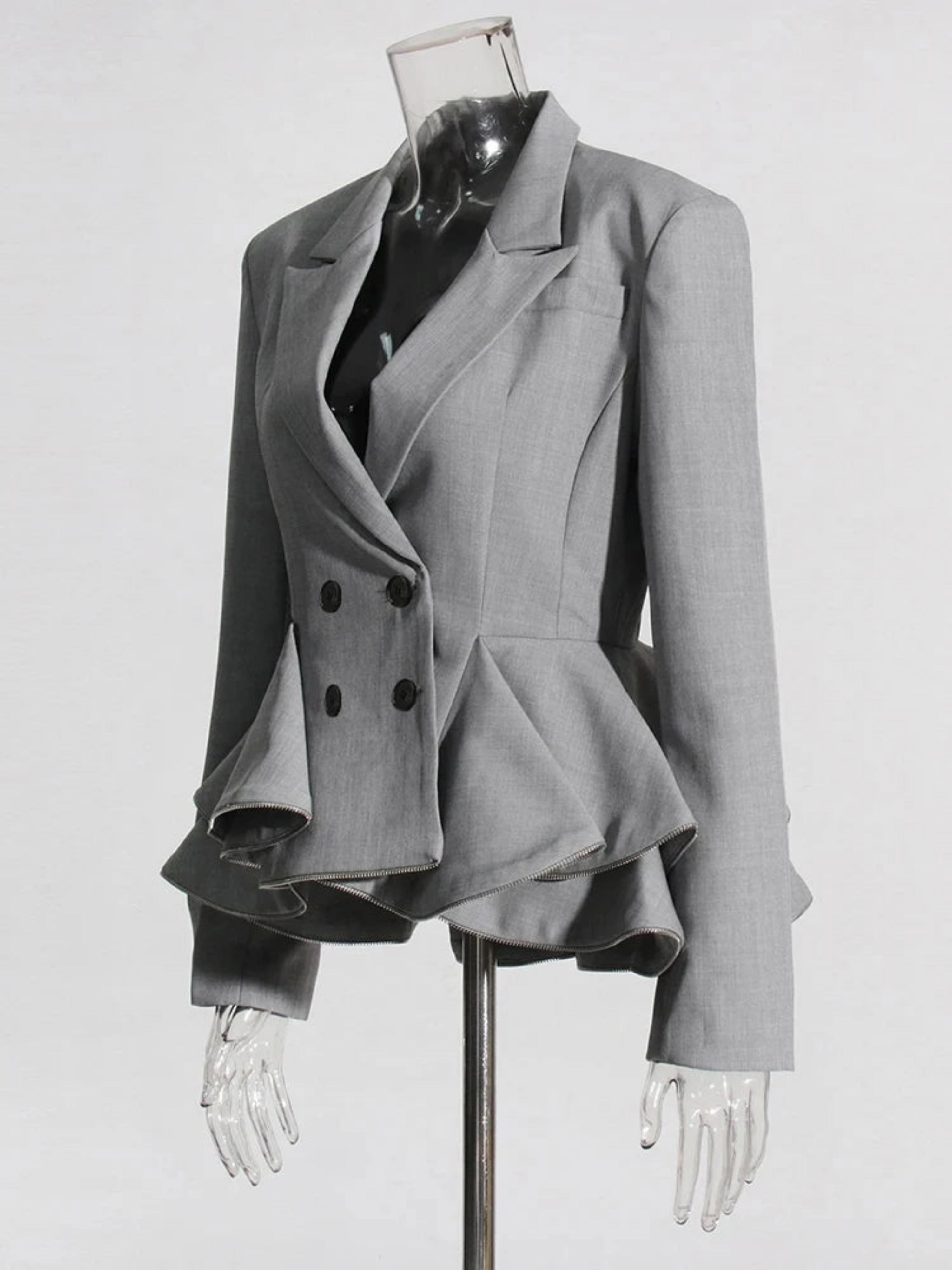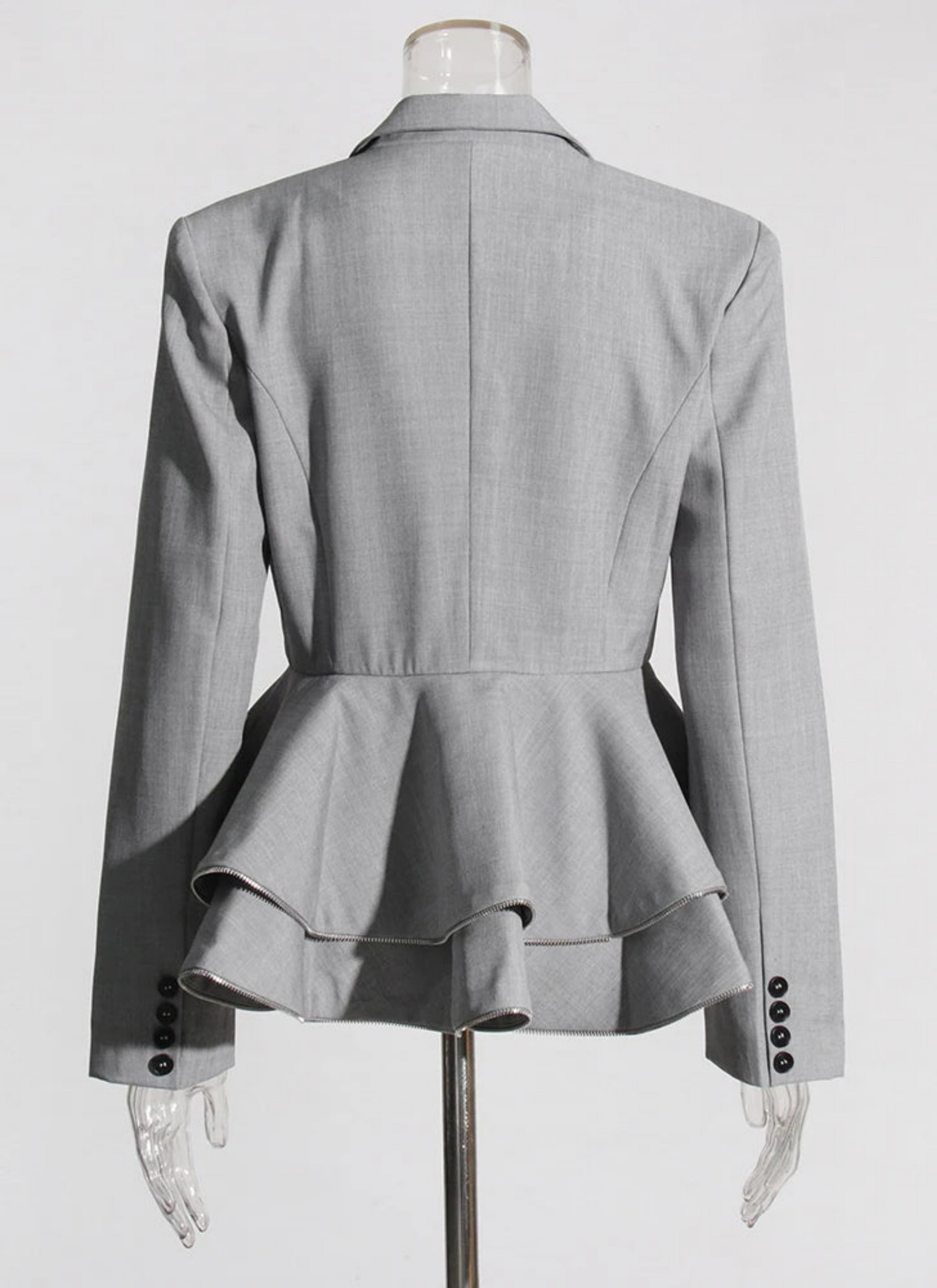 Premium Ruffled Peplum Blazer – Designer Evening & Office Wear