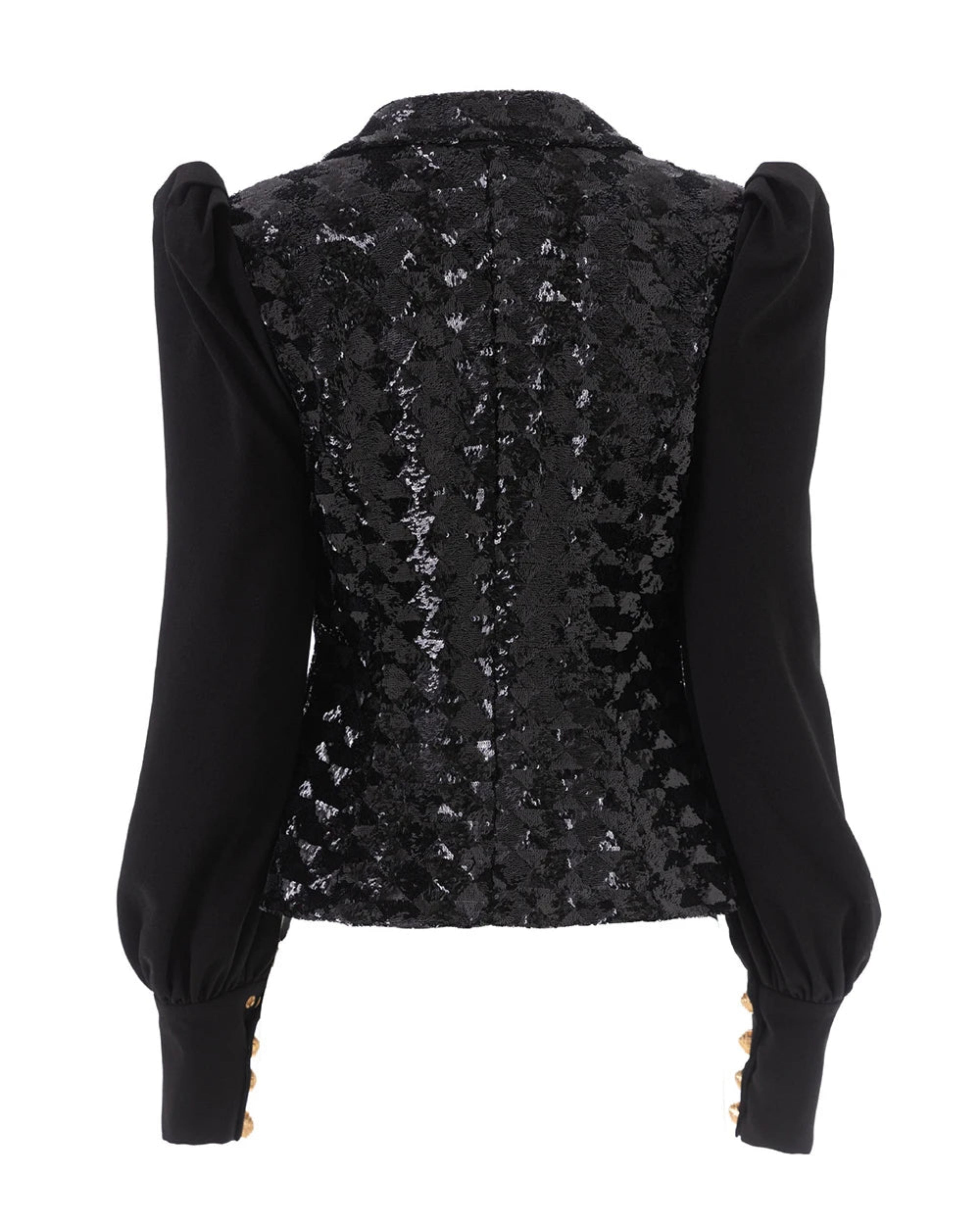 Dramatic puff sleeves and structured shoulders create a striking, elegant silhouette, while the slim tailored fit ensures a sophisticated presence for formal events, evening soirées, or upscale daytime occasions.