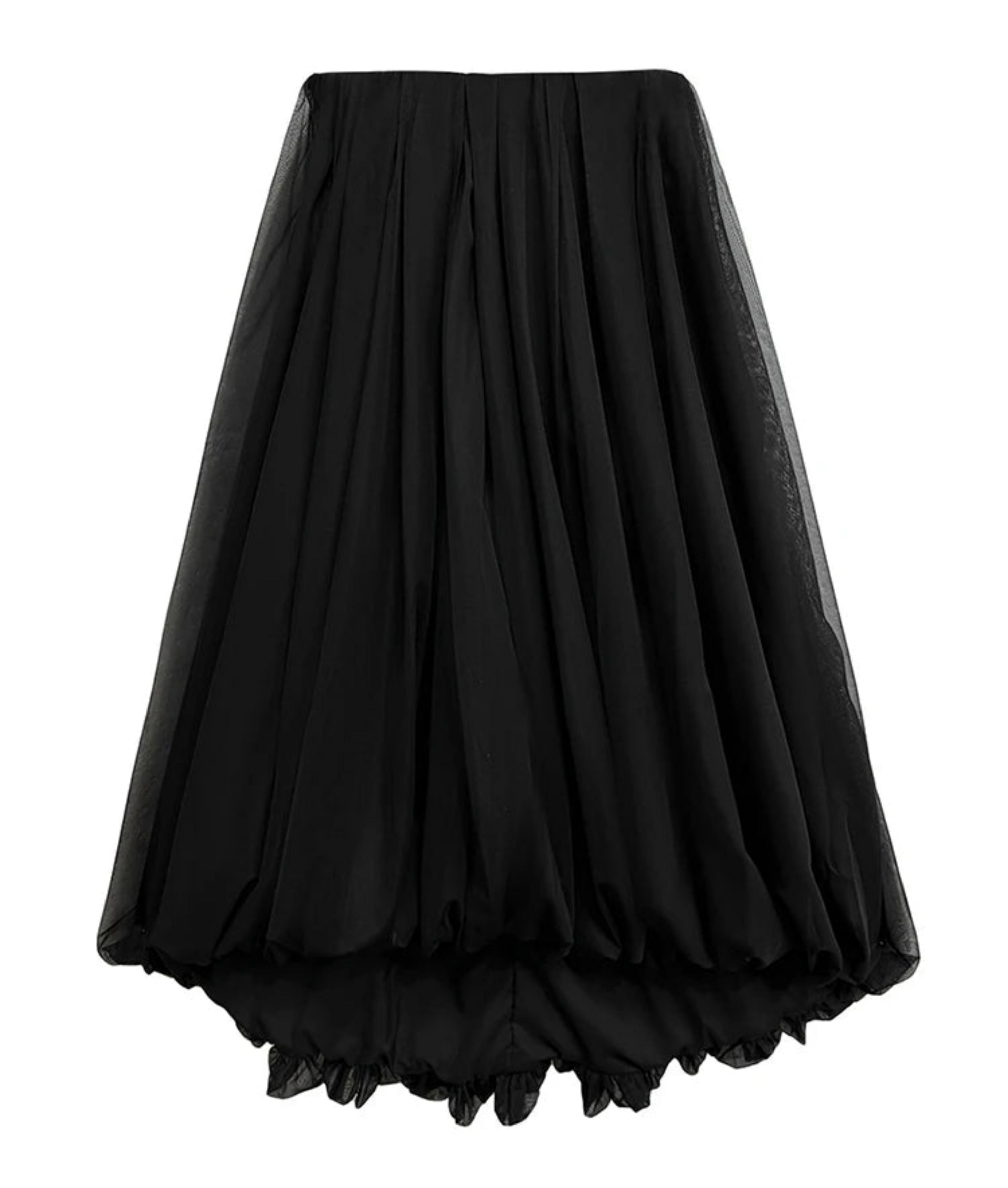 This luxurious voluminous tulle bubble skirt features an elastic waistband and asymmetrical draped design for a bold, avant-garde statement.