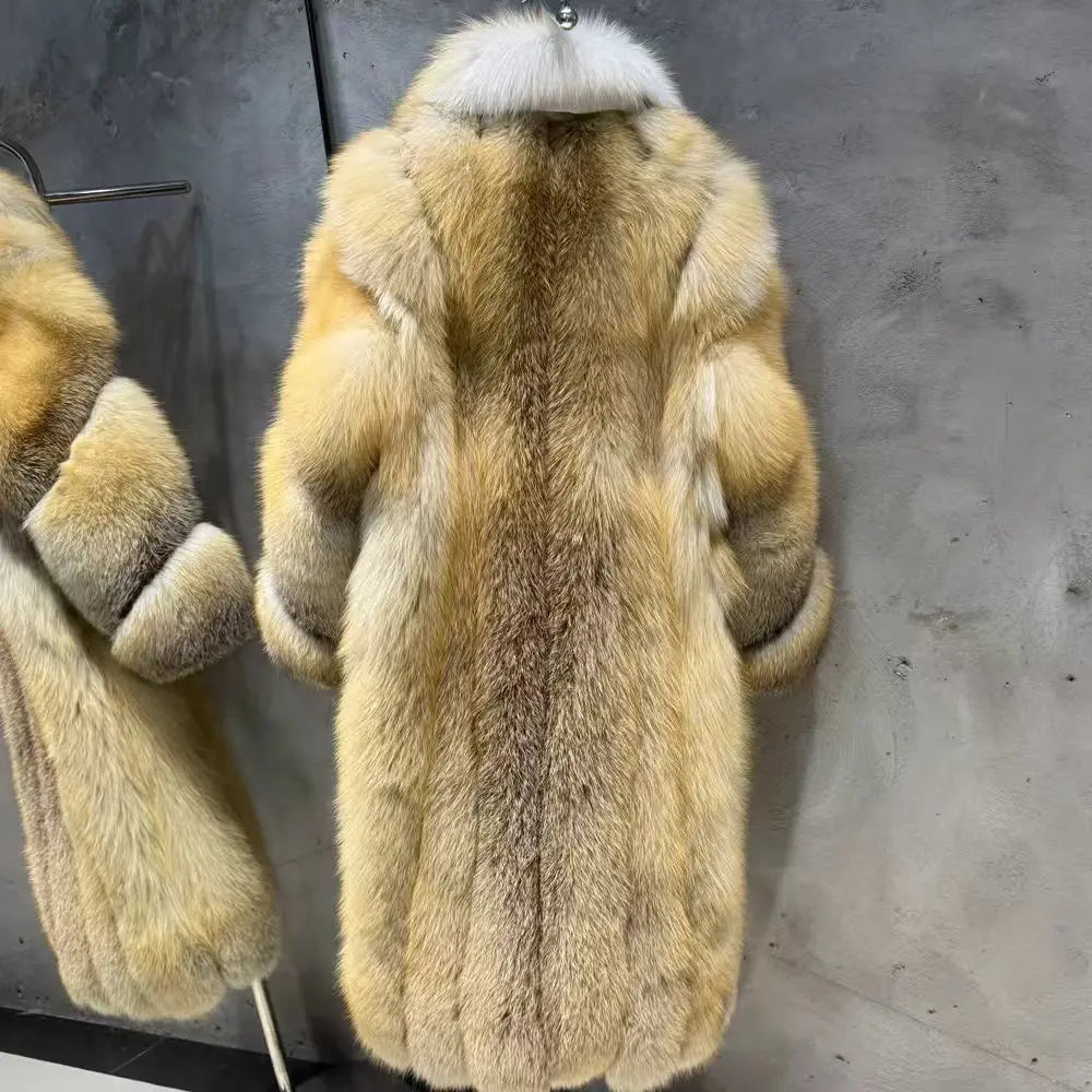 This luxurious full-length fox fur coat is made from 100% genuine, premium golden exotic fox fur.