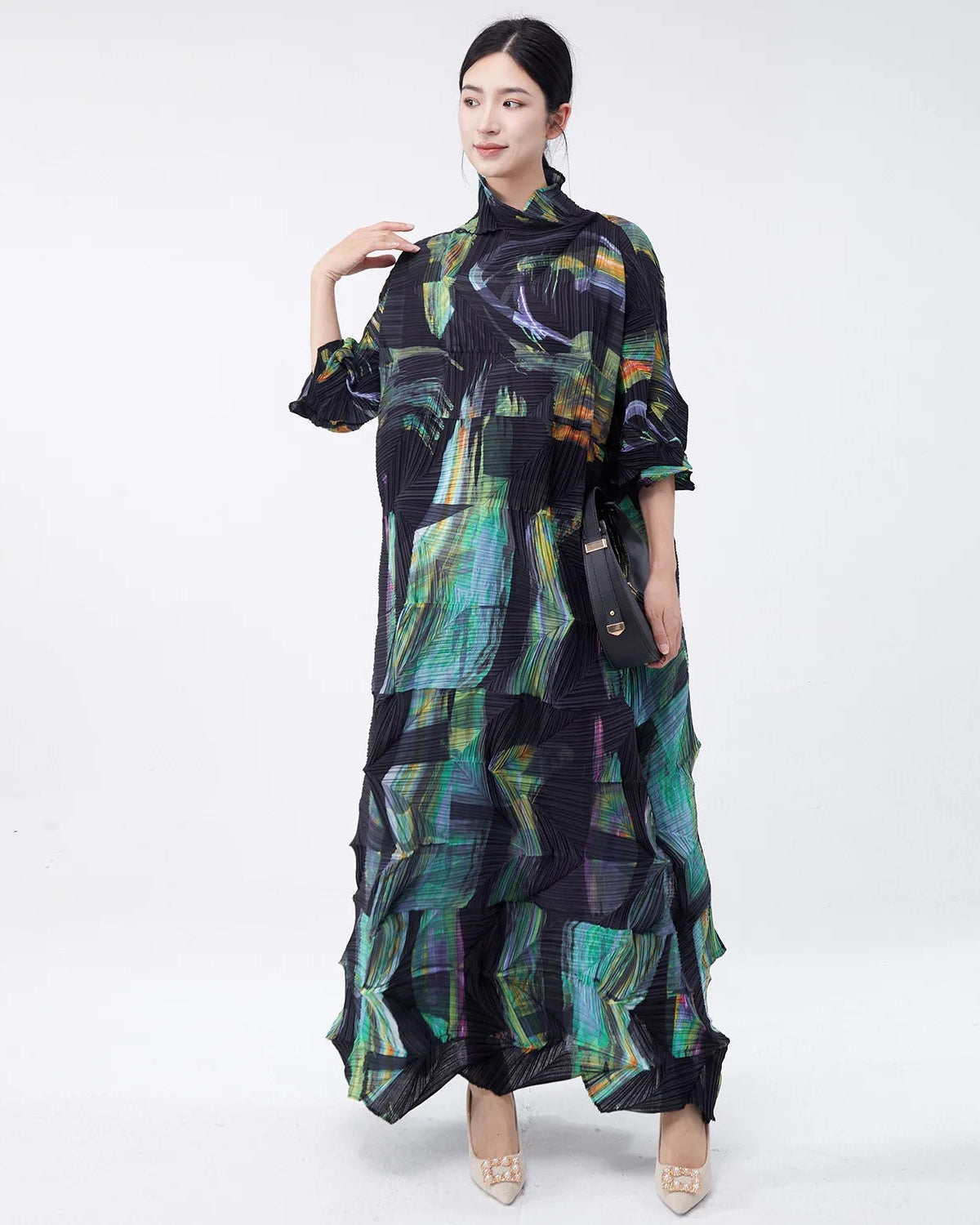 The three-quarter wide sleeves and oversized, loose fit combine comfort and elegance, making it perfect for daily wear, travel, or special formal occasions. Premium Japanese pleats ensure wrinkle resistance, easy care, and a smooth, luxurious feel.